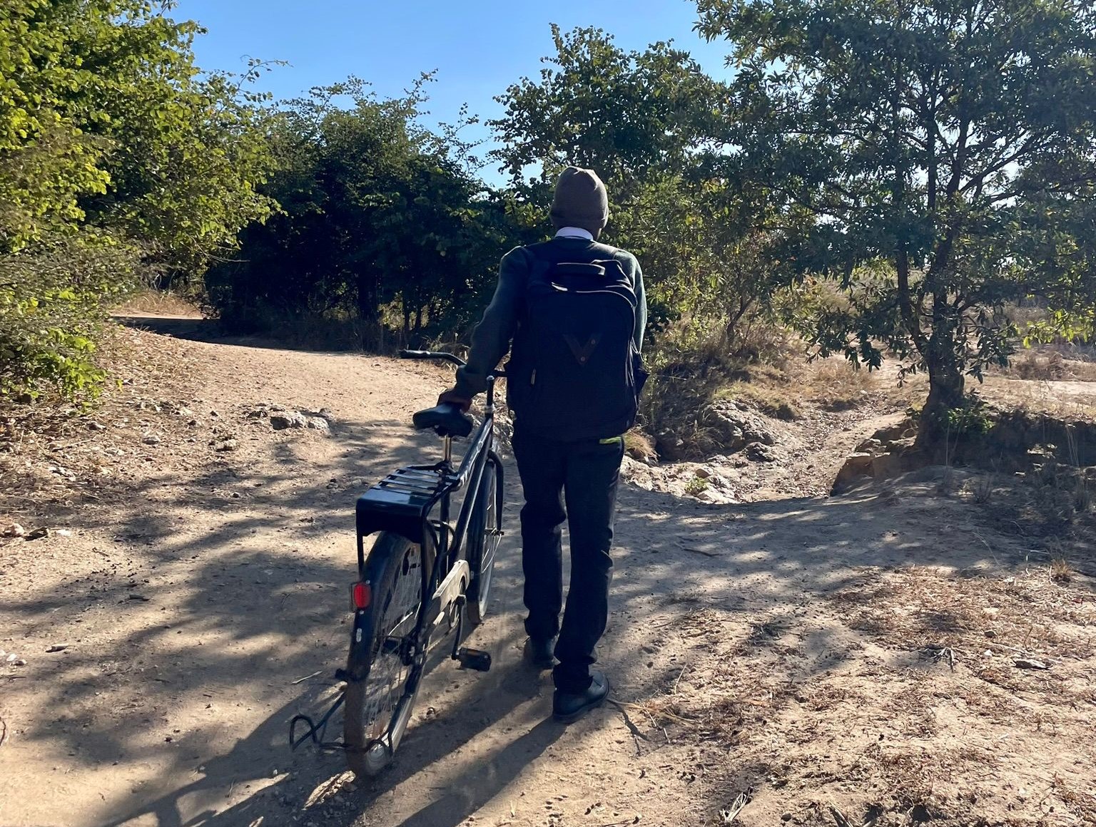 Beneficiary Timothe with a bicycle funded by Jesuit Missions