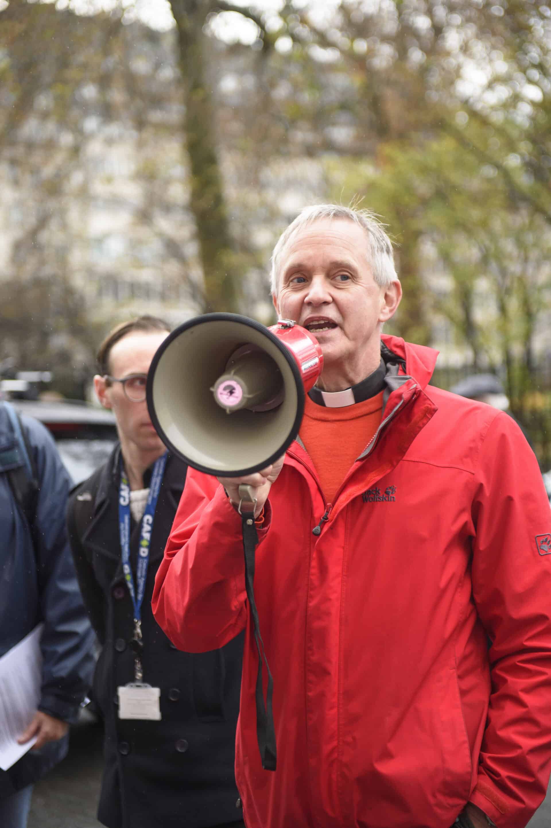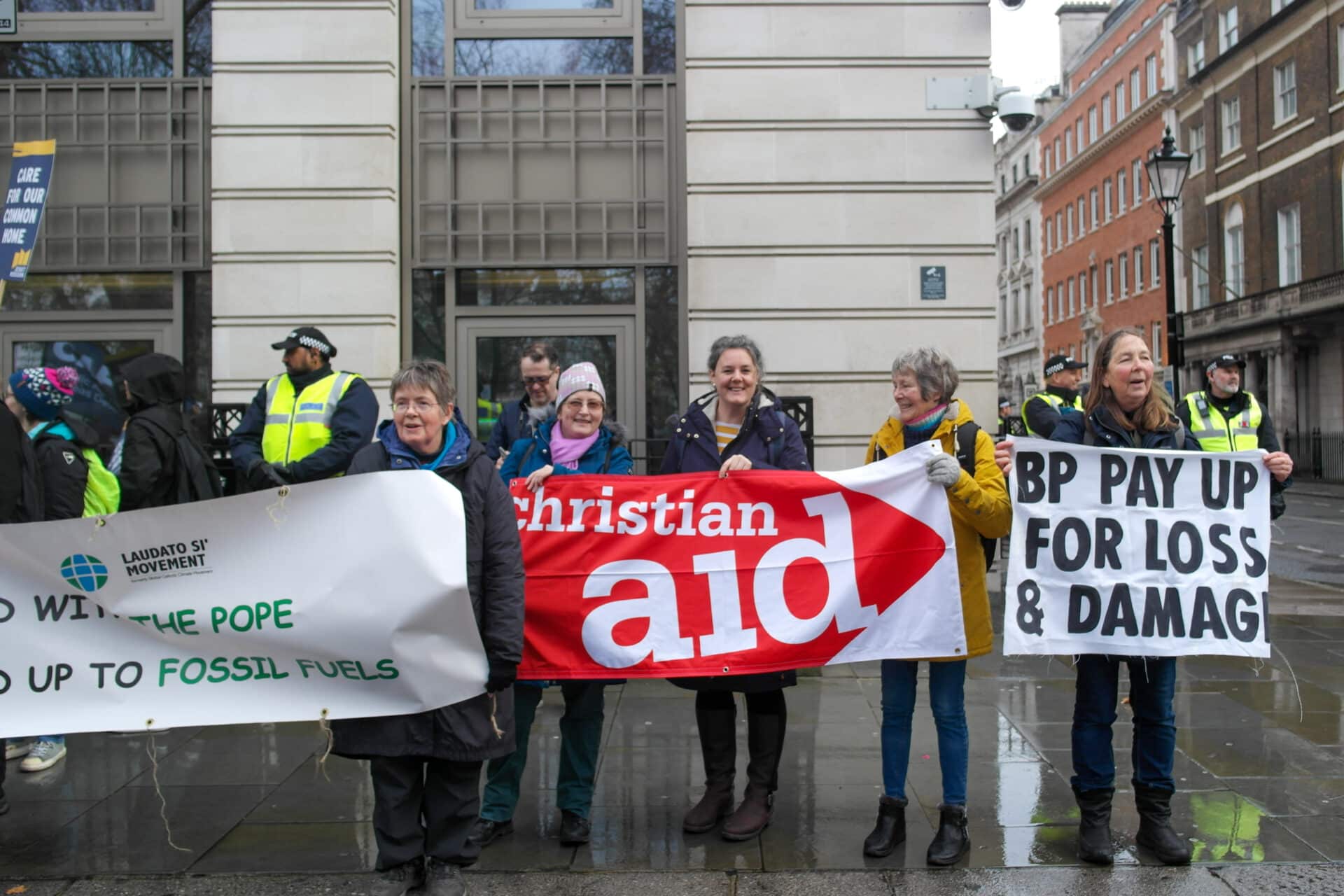 At 11am, supporters and clergy then marched to St James Sq (the location of BP) to join the other Faith groups brought together including Tearfund, Cafod, Laudato Si’ movement, Faith For The Climate, Operation Noah, Christian Climate Action and the Peace & Justice group from the Diocese of Westminster.