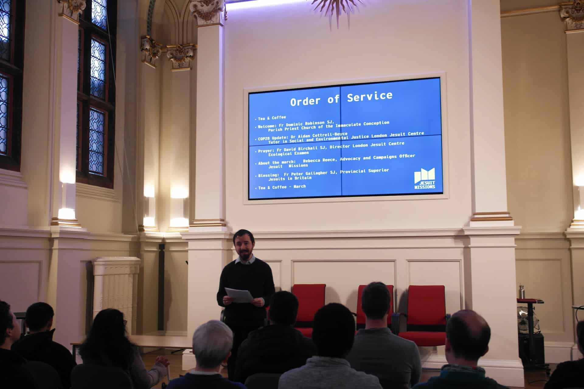 We first gathered at the London Jesuit Centre to hear updates from the COP28 negotiations, and to pray for those experiencing the effects of climate change, as well as those in global leadership positions who are called on to take action.